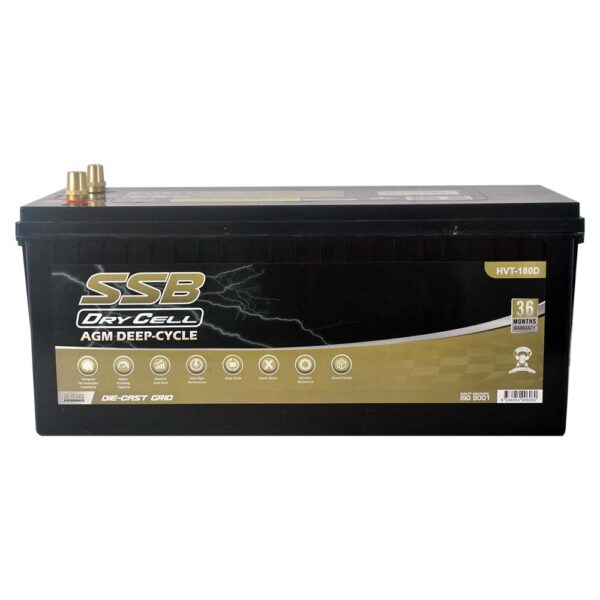 The HVT-180D is part of SSB’s high-performance HVT DryCell series, utilizing advanced Valve Regulated Lead Acid (VRLA) Absorbed Glass Mat (AGM) technology. This battery is fully sealed, spill-proof, and maintenance-free, making it safe for installation in various positions, including side mounting. Designed to handle vibration, shocks, and harsh Australian climates, the HVT-180D provides long-lasting, dependable power whether used for engine starting or deep-cycle storage.