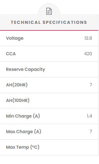 | Cold Cranking Amps (CCA) | 420 CCA |