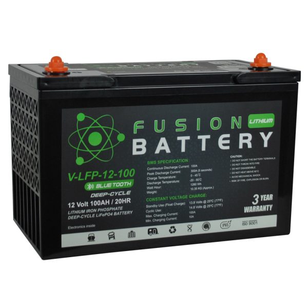 Take your power to the next level with the V-LFP-12-100 Fusion Lithium 12V 100Ah Deep Cycle Battery a premium, lightweight, and long-lasting lithium solution designed to outperform traditional lead-acid batteries in every way. With a true 100Ah usable capacity and advanced LiFePO₄ (Lithium Iron Phosphate) chemistry, this battery delivers more usable power, faster charging, and thousands of deep cycles, all at a fraction of the weight.