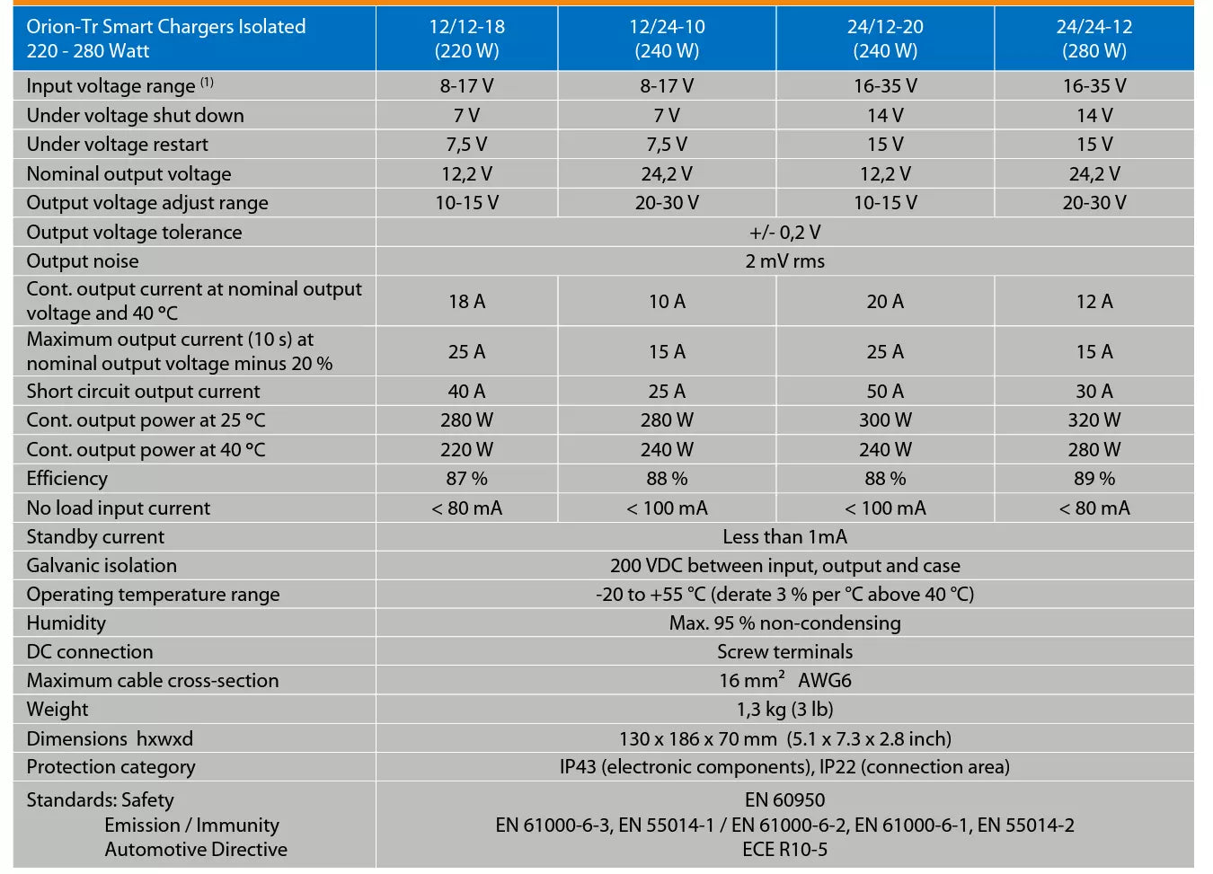 Charge right, every time. The Orion-Tr Smart 12/12-18A (220W) Isolated is a Bluetooth-enabled, adaptive 3-stage DC-DC charger for 12V dual-battery systems in caravans, 4WDs, boats and off-grid rigs. Configure profiles for Lithium, AGM, Gel and Lead-acid in the VictronConnect app, with engine-running detection and remote on/off for clean installs. The isolated design provides galvanic separation between input and output for added safety and noise reduction. :contentReference[oaicite:0]{index=0}